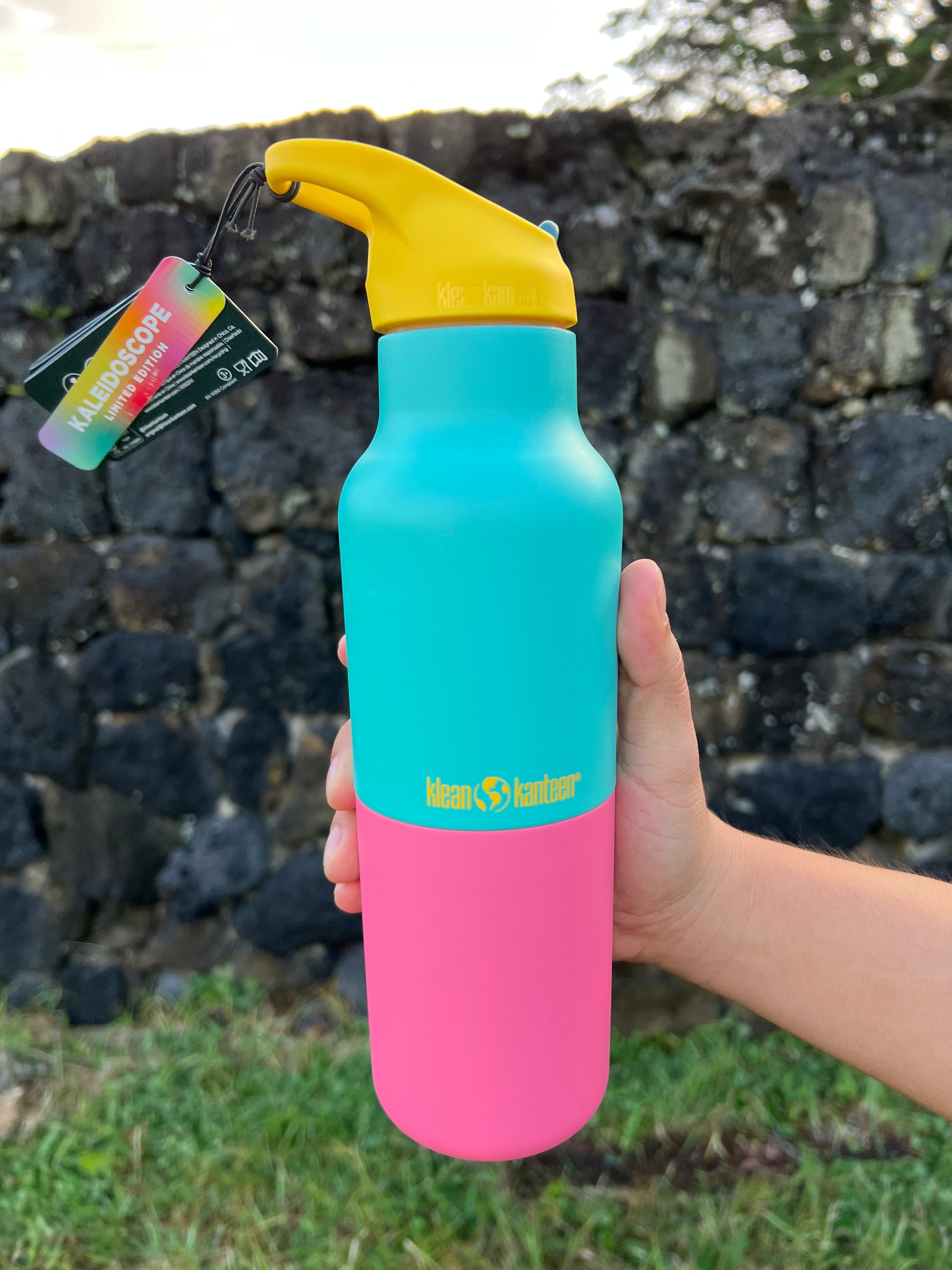Esta botella de 16oz es parte de la colección limitada Kaleidoscope: diseñada para destacar y acompañarte en cada aventura.